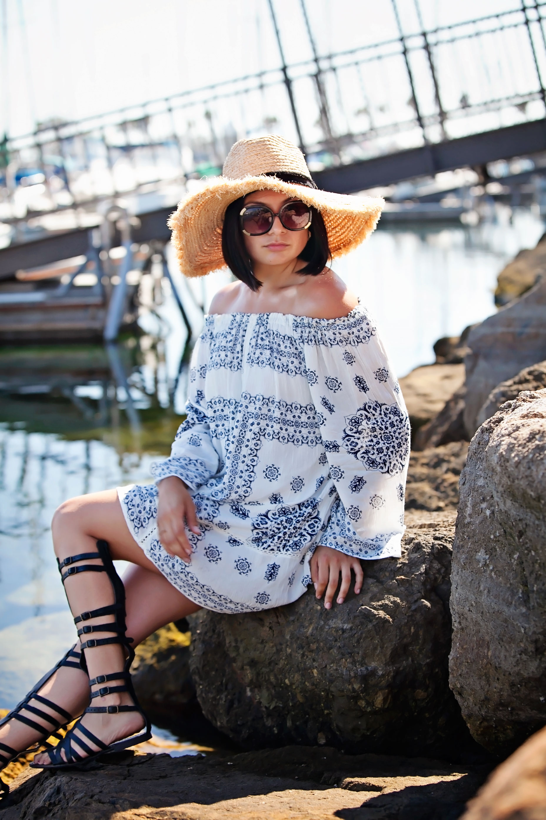 Gladiator Sandals: Steve Madden //Zara off-Shoulder Printed Dress//